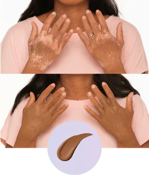 Body Coverage Perfector provides buildable, long-lasting coverage with a natural finish to perfectly conceal scars and even skin tone. For best results, we recommend applying 2-3 layers to cover scars depending on the severity. For hard-to-reach areas, use our Blend and Blur Body Brush for a quick and seamless application. The formula is waterproof and transfer resistant, for budge-proof coverage throughout the day.